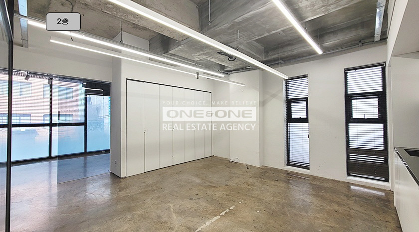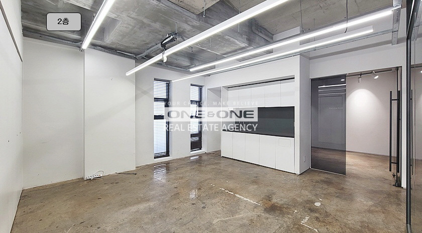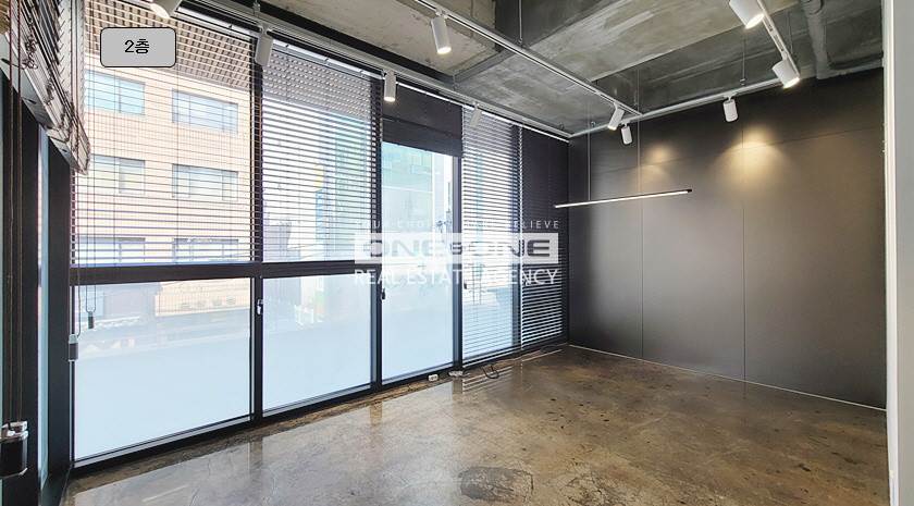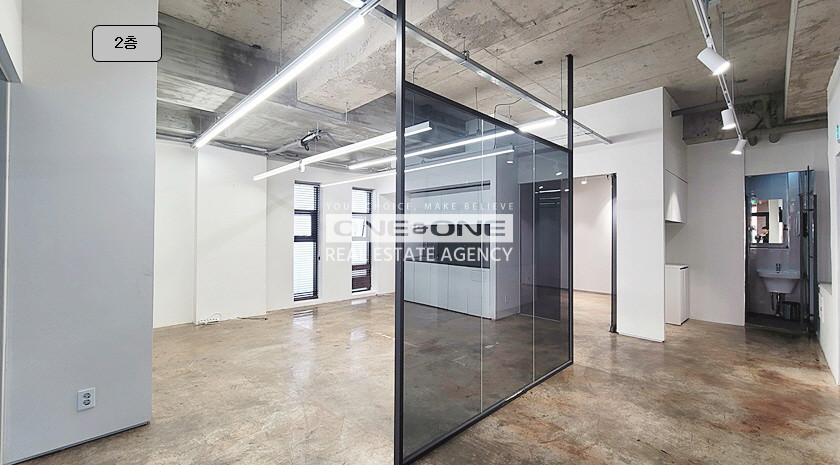 지상 2층 : 업무 홀(1) + 업무 룸(2) + 탕비공간 有 + 테라스 有
