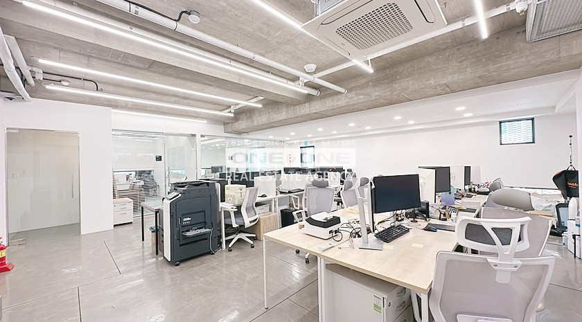 ✅ 청담동 가시성 좋은 디자인 외관, 전용48평, 공간분리 좋은 구조 룸2 단독테라스 탕비실, 깔끔한 에폭시바닥 노출천장 인테리어 사무실