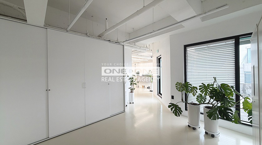 ✅ 신사 가로수길 인근, 가시성 좋은 외관, 전용50평, 단독테라스 보유, 룸3 화이트톤 노출천장 인테리어 사무실