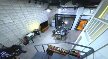 ▶ 홀, 룸3개, 복층구조, 음악작업실 인테리어 , 층고 높음4M정도, 외부 남여분리 화장실, 엘레베이터