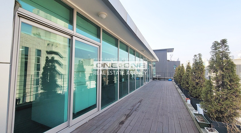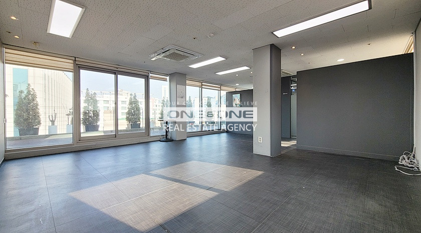 업무 홀(1) + 중형 룸(2) + 창고(1) + 탕비실 有 + 대형 테라스 有
